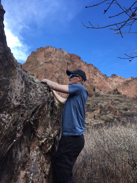 Hiking in a less familiar part of Garden of the Gods. The slightly overhanging wall on the back right is, to my knowledge, unclimbed and unexplored. It should be.